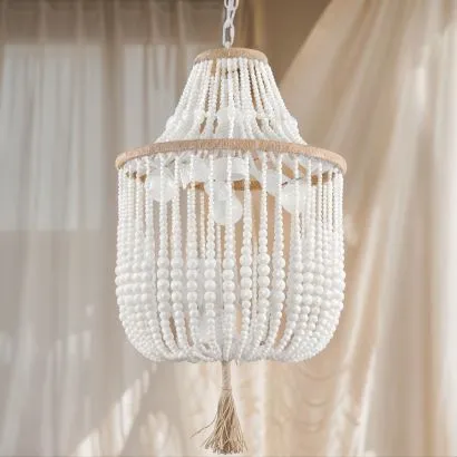 Lampe de plafond à boules en bois - Lampe suspendue de style boho Bali - Lawan