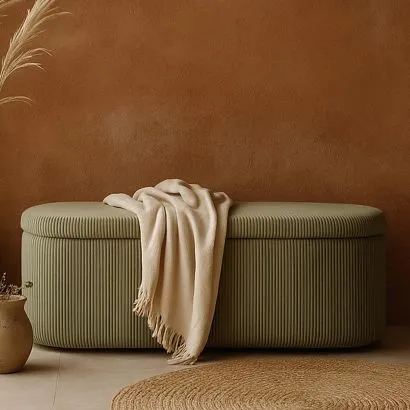 Banc Avec Rangement Interne Rembourré En Tissu Velours Côtel...