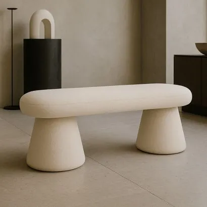Banc Rembourré En Tissu Bouclé Blanc - Moderne Élégant Minim...