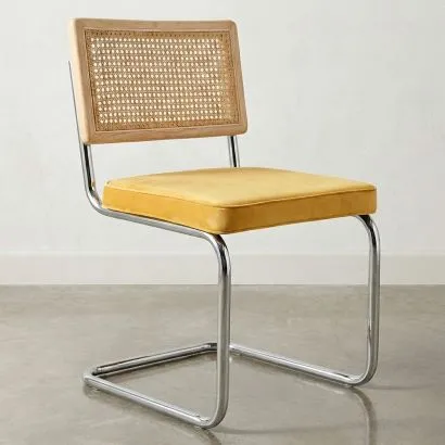 Chaise de salle à manger - Tapissée de velours - Bois et rot...