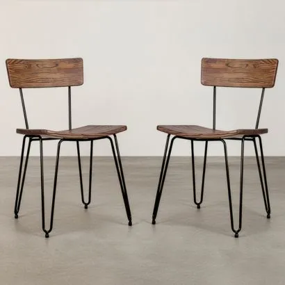 Lot de 2 chaises de salle à manger en bois - Design industri...