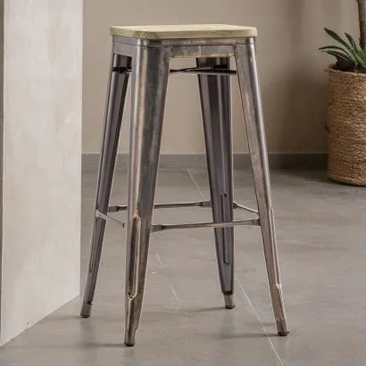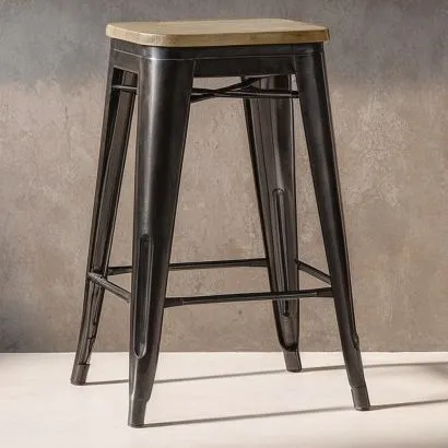 Tabouret Design Industriel - Bois & Acier - 46cm - Stylix
