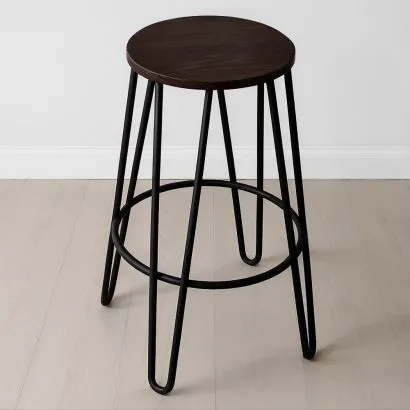 Tabouret rond - Design industriel - Bois et métal - 66cm - Hairpin