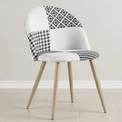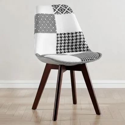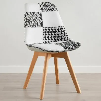Chaise de salle à manger - Tapisserie patchwork noir et blanc - Nouvelle édition - Sam