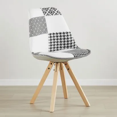 Chaise de salle à manger - tapissée en patchwork noir et blanc - Denisse