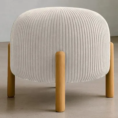 Pouf Rond Tapissé en Velours Côtelé avec Pieds en Bois Natur...