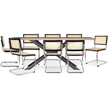 Pack Table à manger en bois design industriel (200cm) & 8 ch...
