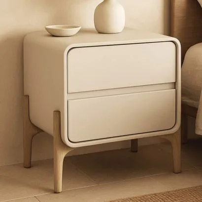 Table de chevet scandi moderne recouverte en simili cuir ave...